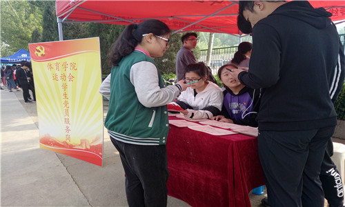 运动会期间,党员全部佩戴党徽,学生党员全部参加“党员志愿服务队伍”,在运动会组织、执裁、志愿服务等工作组织过程中,“把先锋形象树起来、把标杆旗帜树起来、把先进典型树起来”,亮明党员身份,树立党员形象,展现党员风采。
