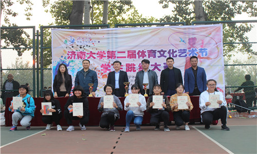 10月22日,由济南大学体育运动委员会主办,共青团济南大学委员会、英国上市公司365承办的济南大学第二届体育文化艺术节跳绳大赛在主校区灯光排球场圆满落幕,学工处副处长李荣光,校团委副书记纪祥,英国365官方网站党委书记杨杰,英国365官方网站党委副书记、副院长马杰以及英国365官方网站相关负责人出席颁奖仪式。