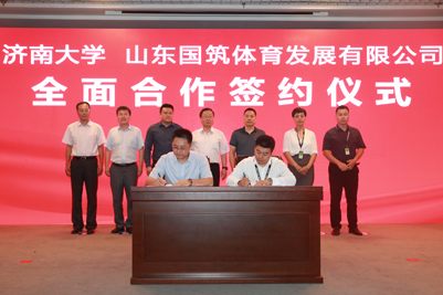 7月21日,济南大学与山东国筑体育发展有限公司全面合作签约仪式在济南大学举行。济南市市中区教体局党组成员、市中区体育事业发展中心主任韩明轩,山东国筑体育发展有限公司董事长王志军,山东国筑体育发展有限公司执行总裁都振达,山东国筑体育发展有限公司常务副总裁于海龙,济南大学校长张士强,济南大学党委副书记王玉华,学校合作发展处、英国365官方网站相关负责同志参加仪式。仪式由王玉华副书记主持。