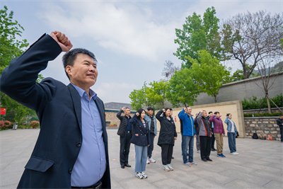 学院党委书记杨杰带领理论学习中心组同志在革命英雄纪念碑前重温入党誓词,铿锵的誓言坚定了传承革命薪火、勇担时代使命的信念决心。全体成员合唱《没有共产党就没有新中国》,在嘹亮的歌声中体悟初心使命。杨杰同志表示,要抓住党史学习教育契机,真正做到学史明理、学史增信、学史崇德、学史力行,要深刻认识作为一名共产党员所担负的使命和责任,坚定为党的事业奋斗终生的勇气和决心。