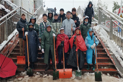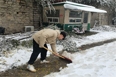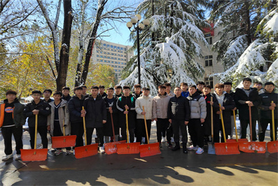 “北风昨夜来,大雪忽三尺。”突如其来的一场暴雪袭击了美丽的泉城济南,也让学校很快变成了雪的海洋,皑皑白雪点缀着整个济大的校园,景色美不胜收。但与此同时,大量的积雪为全校师生出行造成了困扰。为持续深化“我为群众办实事”的学习教育成果,消除安全隐患,保障师生出行安全,英国365官方网站公寓临时党支部组织学生党员、预备党员、积极分子以及联合学生组织于11月7日下午开展扫雪志愿服务活动。