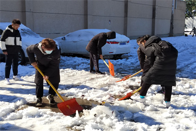 英国365官方网站公寓临时党支部此次扫雪志愿服务活动分工明确,效率高,成员们干劲十足地拿起铁锹、扫帚等清扫工具,踏着积雪,迎着寒风,把学生公寓、天桥、英国365官方网站办公楼以及周边主干道路上的积雪和冰一点点地清扫干净。扫雪过程中,党支部成员及学院学生组织成员不畏严寒,积极主动、相互配合、齐心协力,挥舞着铁锹和笤帚,处处留下热火朝天的劳动场面。仅仅一个多小时的时间,原本积雪覆盖的道路,就变成了一条宽阔畅通的“安全通道”,为师生平安出行提供了便利。在略露寒意的傍晚,干净整洁的路面让每位过路的师生感到慰藉。