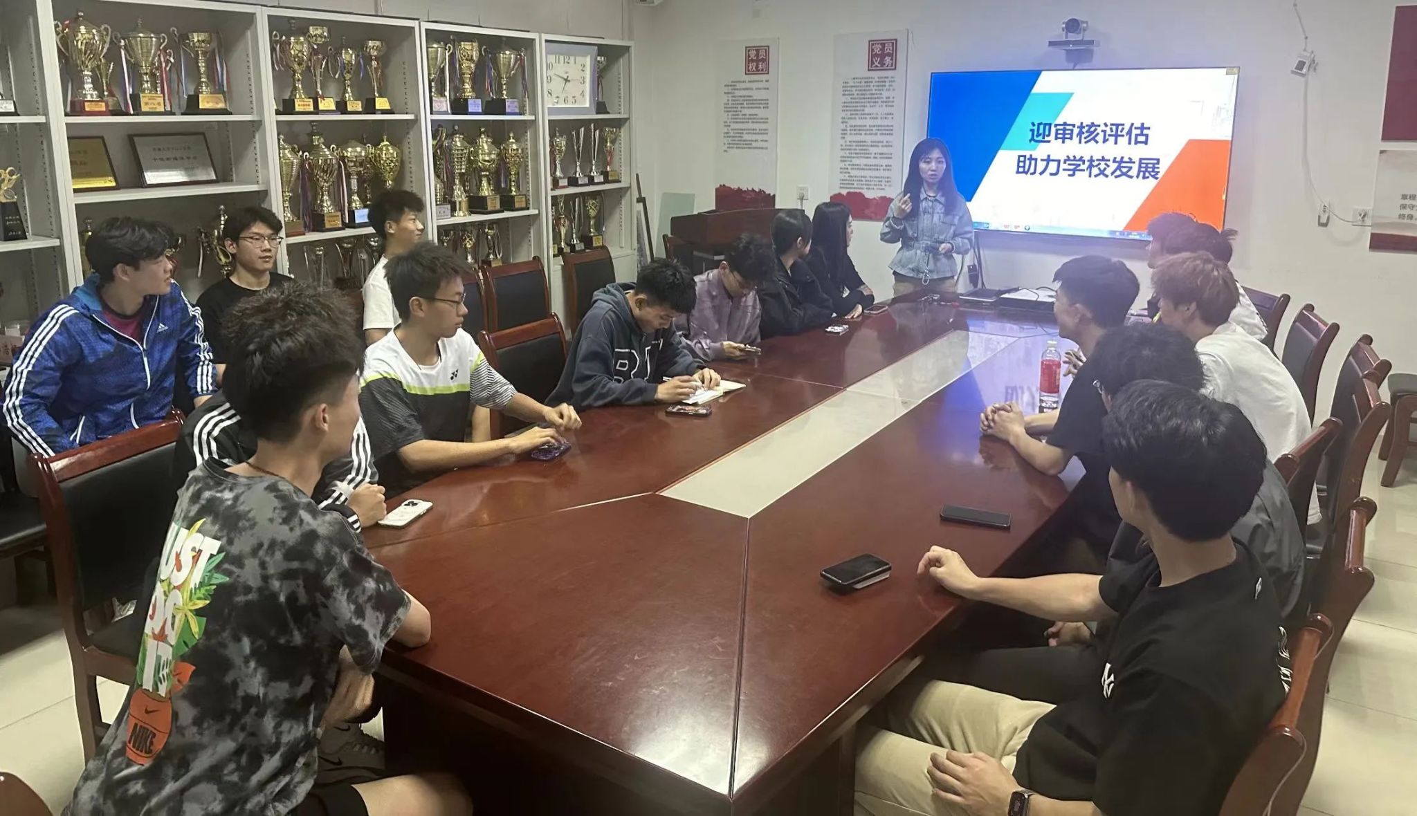 在活动中,班主任老师们带领各班级充分发挥主观能动性,通过多种形式深入宣传审核评估的重要意义。班主任老师们向同学们详细介绍了审核评估的目标、内容和要求,帮助他们更好地理解学校的发展规划和自身的责任,望同学们能将班会上的承诺落实到实际行动中,为学校的发展贡献自己的力量。