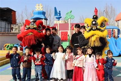 为让小朋友了解更多中国优秀传统文化。英国365官方网站“一缕阳光”志愿者协同济南大学凯旋舞狮社团为小朋友带来传统舞龙舞狮表演。舞狮作为中华民族传统体育文化的重要组成部分,极富民族传统色彩和独特的表演艺术,其表演集观赏性、艺术性、竞技性为一体并具有强烈的吉祥、喜庆色彩和气氛渲染能力。活动中两只狮子威武霸气,动作刚劲,随着鼓点,时而跳跃,时而俯卧,时而与小朋友们亲切互动,孩子们被两只狮子深深吸引。表演后志愿者们仔细向小朋友们介绍中国传统舞狮文化,耐心回答小朋友们的问题。随后在志愿者的帮助下小朋友们也穿上舞龙服饰,在志愿者的指导下有模有样的表演起来。舞狮运动不仅能够在学校里弘扬中华民族的传媒文化与美德,还丰富校园文化和学生的课余生活。志愿者们在传播弘扬舞龙舞狮深厚的历史文化的同时,成员们的耐心以及服务能力也得到幼儿园老师们的一致好评。