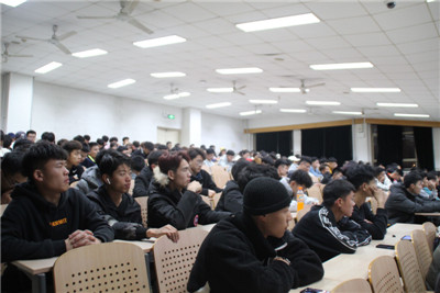 老师李朋忠以抗美援朝七十周年为开头提出铭记历史重要性,并讲解了马克思主义的世界观、人生观、价值观的方法论,提出了当代大学生要正三观,明方法。李朋忠教授以幽默风趣地口吻给同学们引用曾国藩年轻时苦学的故事,告诉同学们学习没有捷径,只有靠自己的刻苦努力,才能取得成功。李朋忠教授运用详实的数据,生动的案例,纵论古今,放眼当下,深入浅出地从时事热点谈到古文名句,从国家情怀谈到为人处世。同时,李朋忠教授也指出学习的重要性。同学们在聆听讲座的过程中秩序井然,表现出了极大的学习兴趣。讲座休息期间,李朋忠教授与同学们亲切交流,分享他多年的教学经验。